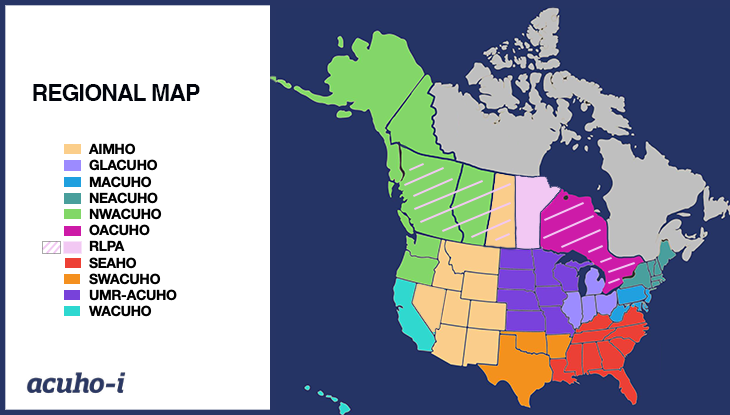 Most ACUHO-I members are also members of their regional association, giving them access to localized support, professional development, and leadership opportunities. While these associations are independent they provide important opportunities for strategic collaboration with ACUHO-I to provide cohesive support for the profession across all levels.